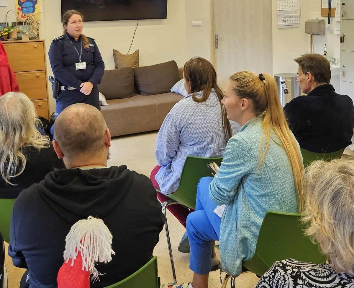 W Centrum Zdrowi Psychicznego 107 Szpitala w Wałczu odbyło się spotkanie policjantki drogówki z pacjentami oddziału. Podczas rozmów funkcjonariuszka przypomniała uczestnikom podstawowe zasady bezpiecznego poruszania się po drogach, zwracając szczególną uwagę na konieczność bycia widocznym po zmroku. Omówiła także przepisy dotyczące korzystania z rowerów, obowiązkowego wyposażenia jednośladów oraz zasad bezpiecznego poruszania się po drogach publicznych i ścieżkach rowerowych.