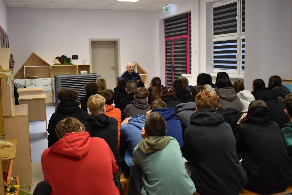 Niebawem święta, a wraz z nimi przerwa w nauce dla dzieci i młodzieży. Jak każdego roku policjanci w związku z tym, odwiedzają placówki oświatowe, aby rozmwiać z ucznaimi i przedszkolakami o bezpieczeństwie w tym okrsie czasu. Pan aspirant Marek Bednarki przypomniał dzieciom, jak bezpiecznie spędzać czas wolny- zarówno w domu, jak i poza nim. Uczniowie z dużym zainteresowaniem słuchali prelekcji i chętnie zadawali pytania. Na koniec wszyscy życzyli sobie nawzajem udanych i bezpiecznych świąt.