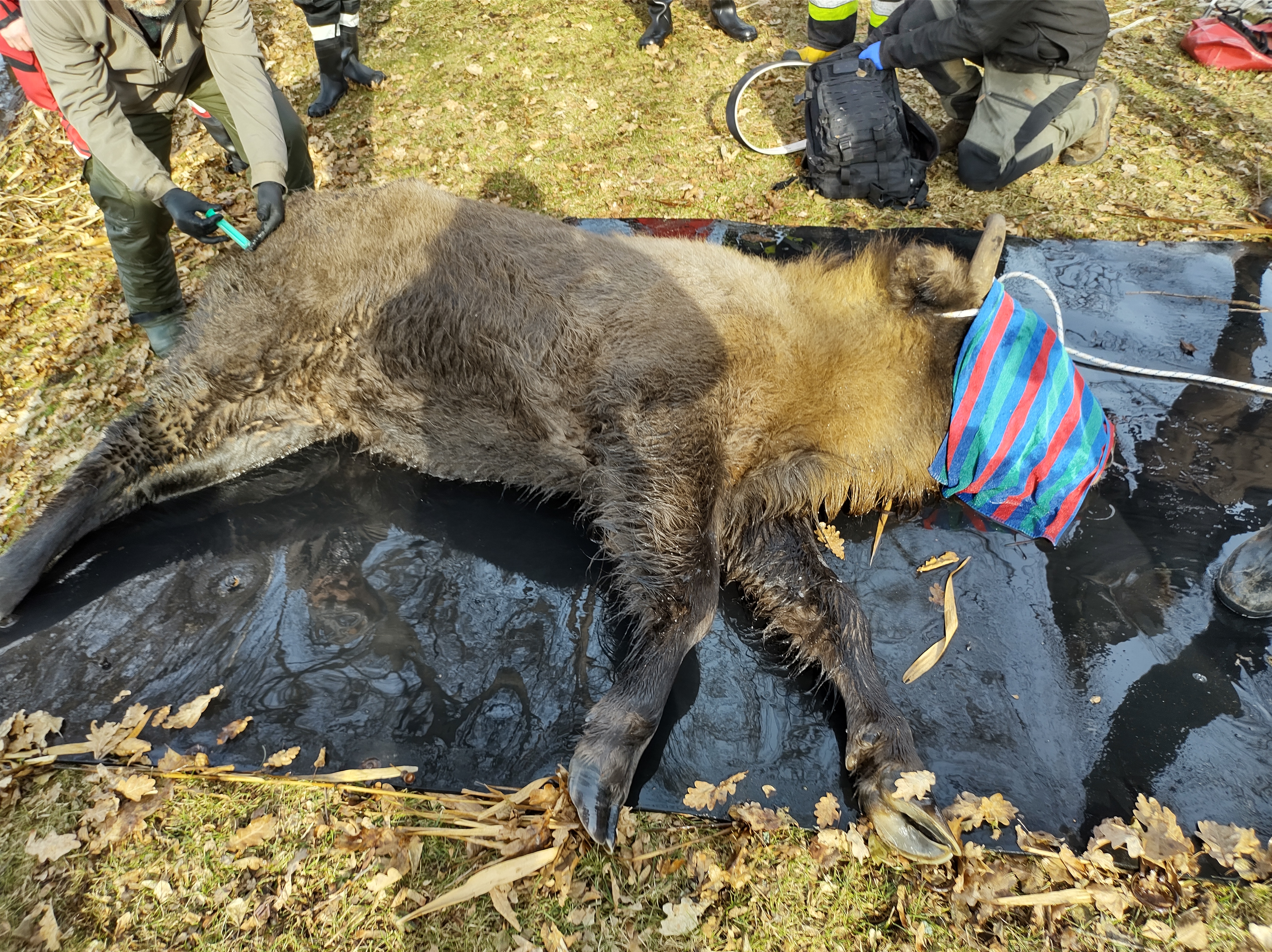 Na miejscu błyskawicznie pojawili się strażacy, policjanci, lekarz weterynarii oraz pracownicy Zachodniopomorskiego Towarzystwa Przyrodniczego. Dzięki ich profesjonalizmowi i ogromnemu zaangażowaniu młodą żubrzycę udało się bezpiecznie wyciągnąć z lodowatej wody.Po wstępnym badaniu weterynaryjnym wszystko wskazuje na to, że nic poważnego jej się nie stało Teraz będzie dochodzić do siebie pod opieką ZTP, a gdy nabierze sił – wróci do swojego stada. Ogromne podziękowania należą się mieszkańcowi, który zauważył zwierzę na jeziorze i natychmiast zareagował. Wielkie brawa dla kolegów strażaków za profesjonalną akcję oraz dla opiekunów żubrów z ZTP za troskę i serce. Trzymamy kciuki za młodą żubrzycę. Niech szybko wraca do pełni sił!